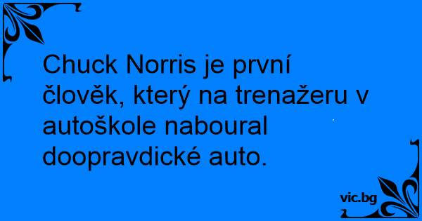Chuck Norris je první člověk, který na trenažeru v autoškole naboural doopravdické auto.