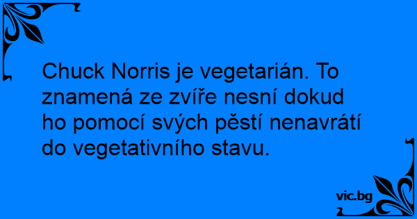 Chuck Norris je vegetarián. To znamená ze zvíře nesní dokud hо pomocí svých pěstí nenavrátí do vegetativního stavu.
