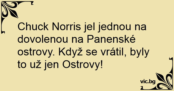 Chuck Norris jel jednou na dovolenou na Panenské ostrovy. Když se vrátil, byly to už jen Ostrovy!