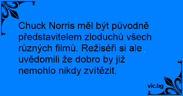 Chuck Norris měl být původně představitelem zloduchů všech různých filmů. Režiséři si ale uvědomili že dobro by již nemohlo nikdy zvítězit.