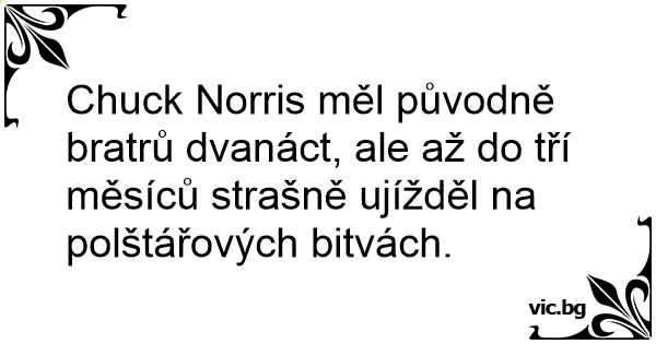 Chuck Norris měl původně bratrů dvanáct, ale až do tří měsíců strašně ujížděl na polštářových bitvách.