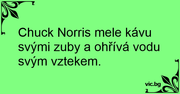 Chuck Norris mele kávu svými zuby a ohřívá vodu svým vztekem.