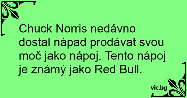 Chuck Norris nedávno dostal nápad prodávat svou moč jako nápoj. Tento nápoj je známý jako Red Bull.