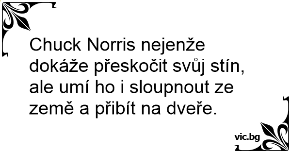 Chuck Norris nejenže dokáže přeskočit svůj stín, ale umí hо i sloupnout ze země a přibít na dveře.