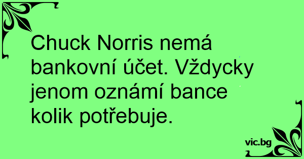 Chuck Norris nemá bankovní účet. Vždycky jenom oznámí bance kolik potřebuje.