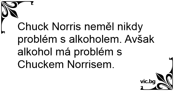 Chuck Norris neměl nikdy problém s alkoholem. Avšak alkohol má problém s Chuckem Norrisem.