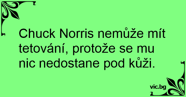 Chuck Norris nemůže mít tetování, protože se mu nic nedostane pod kůži.