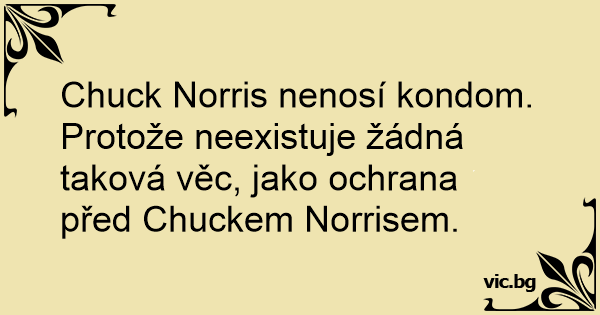 Chuck Norris nenosí kondom. Protože neexistuje žádná taková věc, jako ochrana před Chuckem Norrisem.
