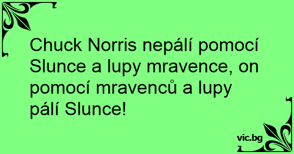 Chuck Norris nepálí pomocí Slunce a lupy mravence, on pomocí mravenců a lupy pálí Slunce!