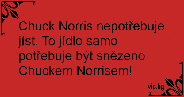 Chuck Norris nepotřebuje jíst. To jídlo samo potřebuje být snězeno Chuckem Norrisem!