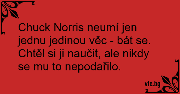 Chuck Norris neumí jen jednu jedinou věc - bát se. Chtěl si ji naučit, ale nikdy se mu to nepodařilo.