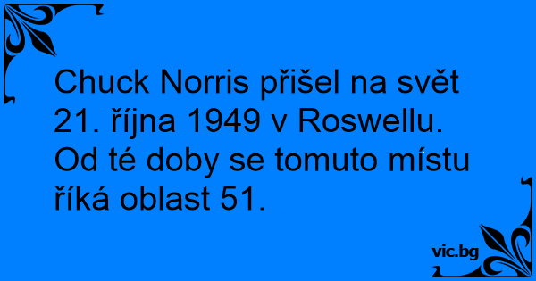 Chuck Norris přišel na svět 21. října 1949 v Roswellu. Od té doby se tomuto místu říká oblast 51.