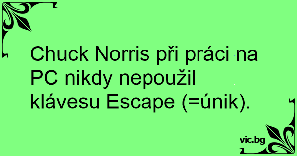 Chuck Norris při práci na PC nikdy nepoužil klávesu Escape (=únik).