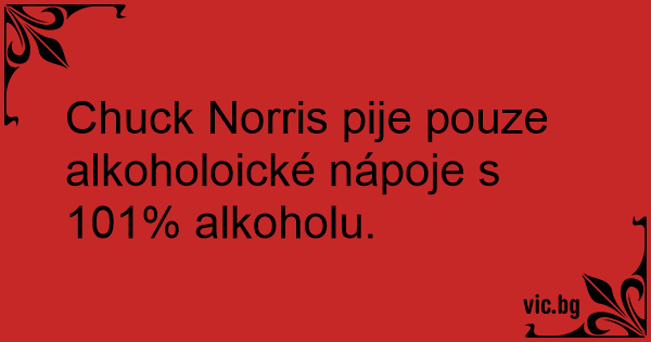 Chuck Norris pije pouze alkoholoické nápoje s 101% alkoholu.