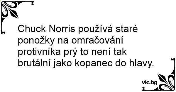 Chuck Norris používá staré ponožky na omračování protivníka prý to není tak brutální jako kopanec do hlavy.