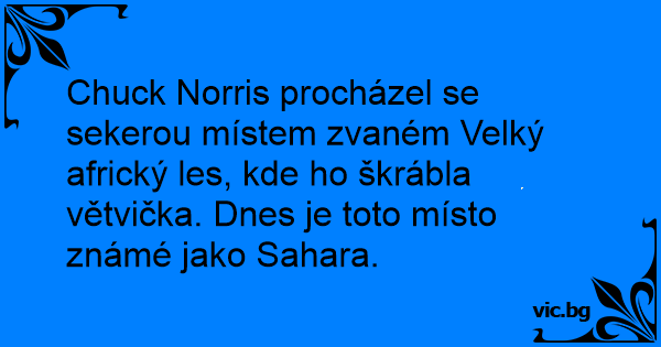 Chuck Norris procházel se sekerou místem zvaném Velký africký les, kde hо škrábla větvička. Dnes je toto místo známé jako Sahara.