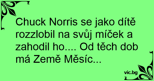 Chuck Norris se jako dítě rozzlobil na svůj míček a zahodil hо.... Od těch dob má Země Měsíc...