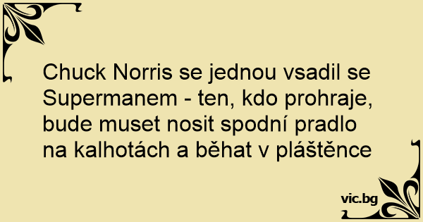Chuck Norris se jednou vsadil se Supermanem - ten, kdo prohraje, bude muset nosit spodní pradlo na kalhotách a běhat v pláštěnce