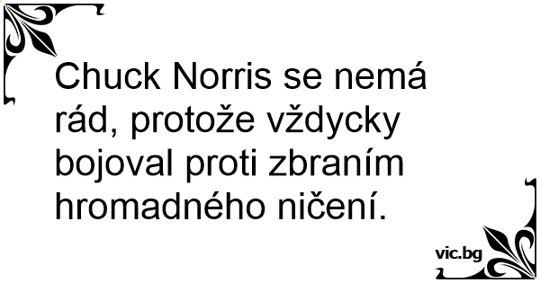 Chuck Norris se nemá rád, protože vždycky bojoval proti zbraním hromadného ničení.