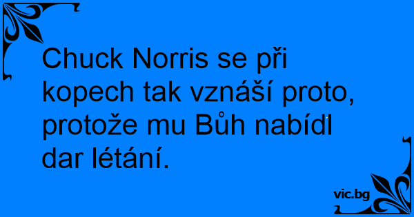 Chuck Norris se při kopech tak vznáší proto, protože mu Bůh nabídl dar létání.