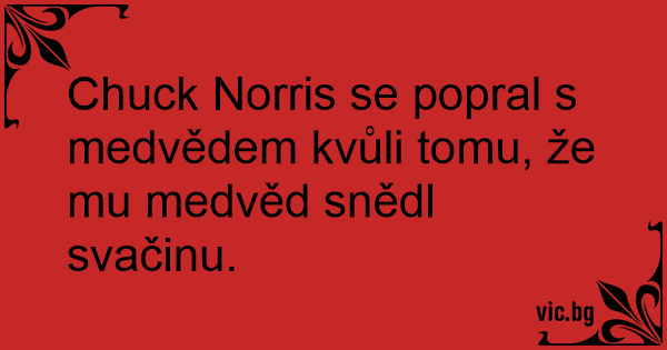 Chuck Norris se popral s medvědem kvůli tomu, že mu medvěd snědl svačinu.