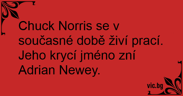 Chuck Norris se v současné době živí prací. Jeho krycí jméno zní Adrian Newey.