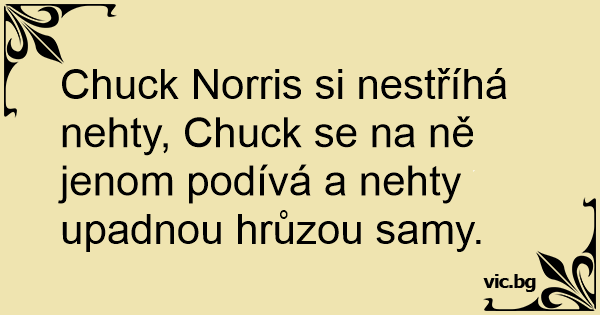 Chuck Norris si nestříhá nehty, Chuck se na ně jenom podívá a nehty upadnou hrůzou samy.