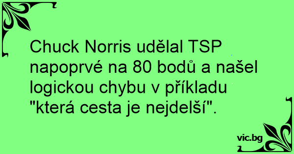 Chuck Norris udělal TSP napoprvé na 80 bodů a našel logickou chybu v příkladu "která cesta je nejdelší".