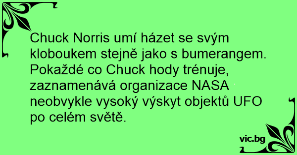 Chuck Norris umí házet se svým kloboukem stejně jako s bumerangem. Pokaždé co Chuck hody trénuje, zaznamenává organizace NASA neobvykle vysoký výskyt objektů UFO po celém světě.