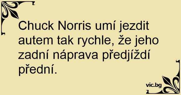 Chuck Norris umí jezdit autem tak rychle, že jeho zadní náprava předjíždí přední.