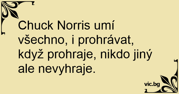 Chuck Norris umí všechno, i prohrávat, když prohraje, nikdo jiný ale nevyhraje.