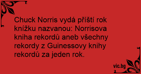 Chuck Norris vydá příští rok knížku nazvanou: Norrisova kniha rekordů aneb všechny rekordy z Guinessovy knihy rekordů za jeden rok.