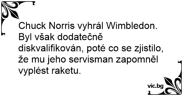 Chuck Norris vyhrál Wimbledon. Byl však dodatečně diskvalifikován, poté co se zjistilo, že mu jeho servisman zapomněl vyplést raketu.