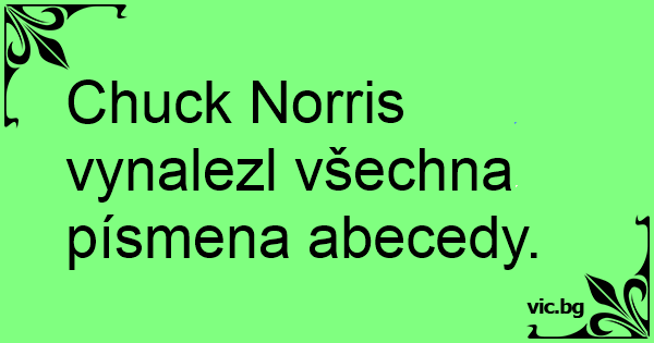 Chuck Norris vynalezl všechna písmena abecedy.