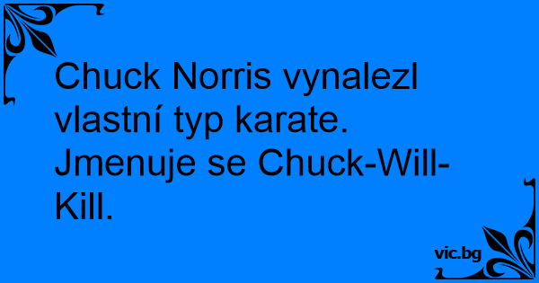 Chuck Norris vynalezl vlastní typ karate. Jmenuje se Chuck-Will-Кill.