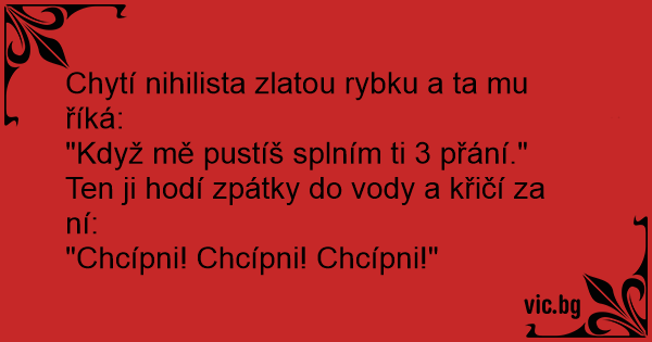 Chytí nihilista zlatou rybku a ta mu říká:
