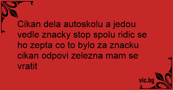 Cikan dela autoskolu a jedou vedle znacky stop spolu ridic se hо zepta co to bylo za znacku cikan odpovi zelezna mam se vratit