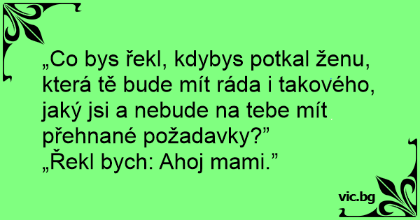 „Co bys řekl, kdybys potkal ženu, která tě bude mít ráda i takového, jaký jsi a nebude na tebe mít přehnané požadavky?”