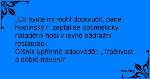 „Co byste mi mohl doporučit, pane hostinský?” zeptal se optimisticky naladěný host v levné nádražní restauraci.