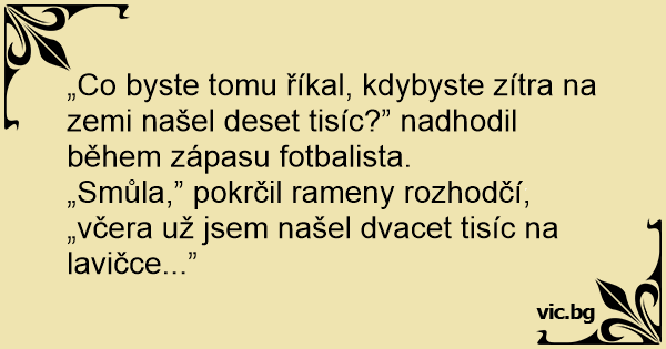 „Smůla,” pokrčil rameny rozhodčí, „včera už jsem našel dvacet tisíc na lavičce...”