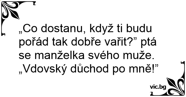 „Co dostanu, když ti budu pořád tak dobře vařit?” ptá se manželka svého muže.