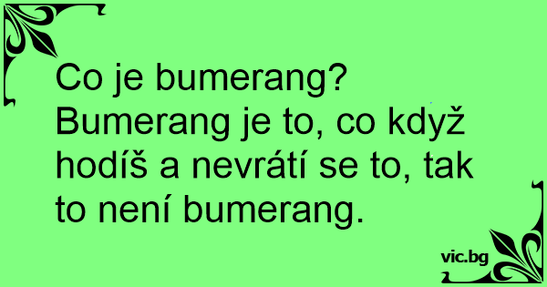 Bumerang je to, co když hodíš a nevrátí se to, tak to není bumerang.