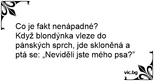 Když blondýnka vleze do pánských sprch, jde skloněná a ptá se: „Neviděli jste mého psa?”
