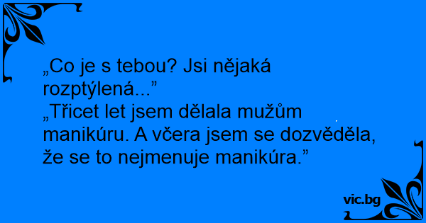 „Třicet let jsem dělala mužům manikúru. A včera jsem se dozvěděla, že se to nejmenuje manikúra.”