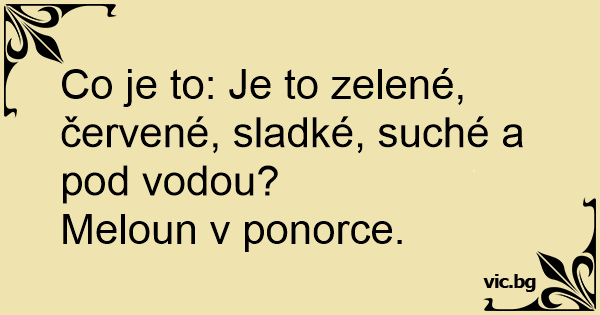 Co je to: Je to zelené, červené, sladké, suché a pod vodou?