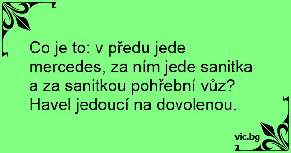 Co je to: v předu jede mercedes, za ním jede sanitka a za sanitkou pohřební vůz?