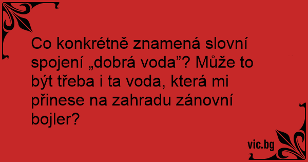 Co konkrétně znamená slovní spojení „dobrá voda”? Může to být třeba i ta voda, která mi přinese na zahradu zánovní bojler?