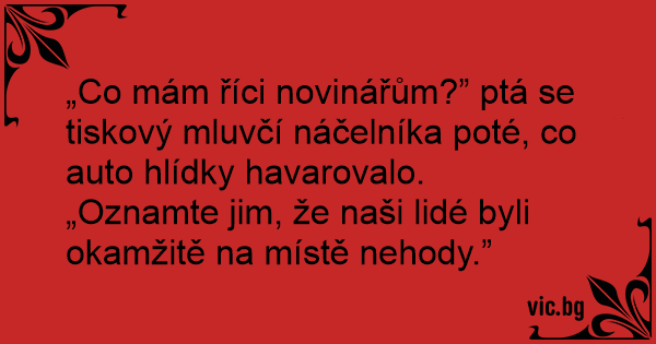 „Co mám říci novinářům?” ptá se tiskový mluvčí náčelníka poté, co auto hlídky havarovalo.