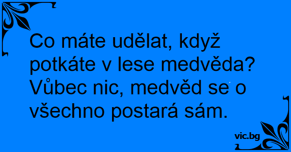 Co máte udělat, když potkáte v lese medvěda? Vůbec nic, medvěd se o všechno postará sám.