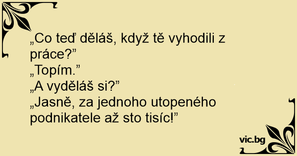 „Jasně, za jednoho utopeného podnikatele až sto tisíc!”